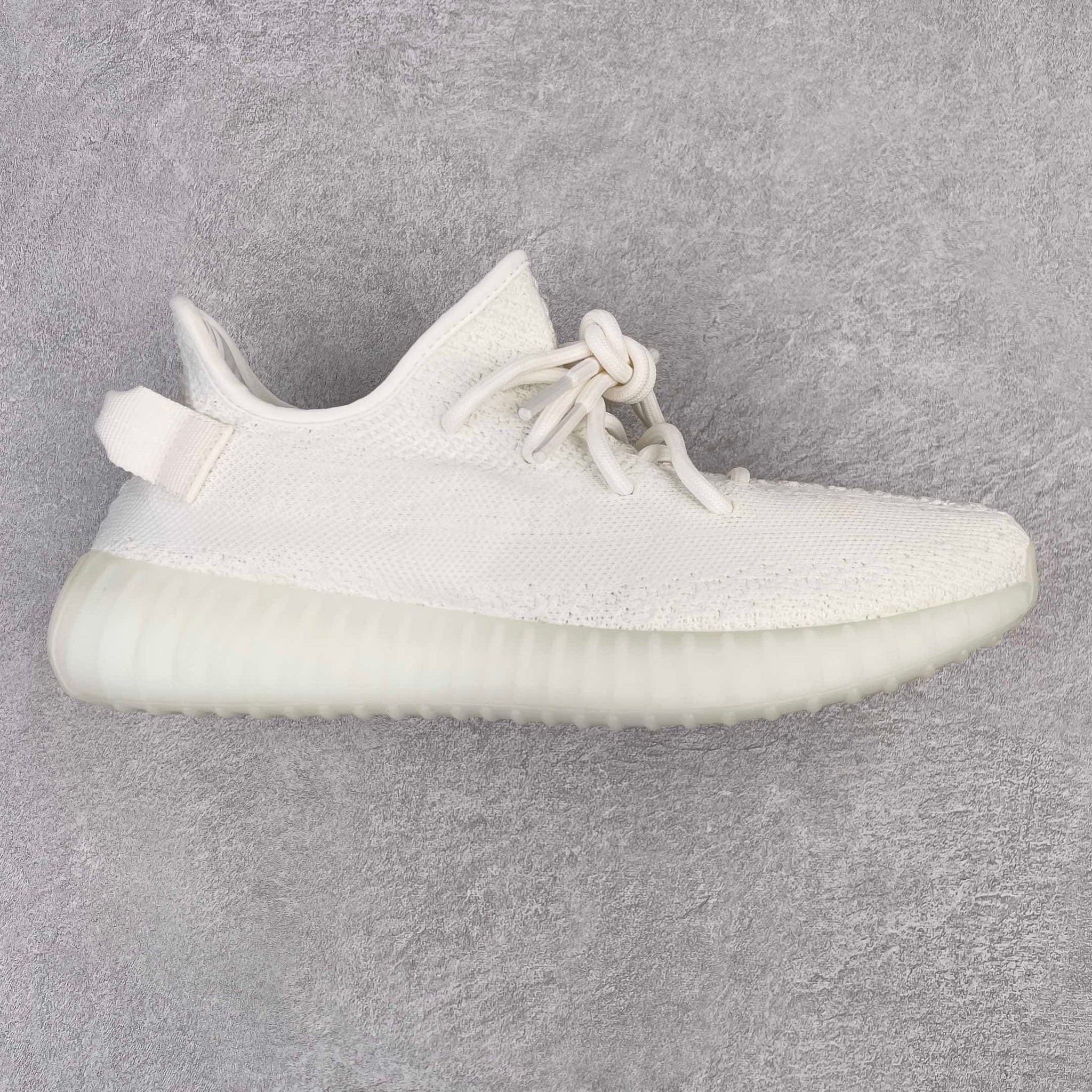 O Adidas Yeezy Boost 350 Bone é um exemplo do sucesso da combinação entre Yeezy e cores neutras. Nessa colorway "Bone", o Off-White é aplicado ao material Primeknit, criando um visual limpo e uniforme. A única quebra na uniformidade é a faixa lateral semitranslúcida, que revela a cor da meia. Além disso, o desenho em globo terrestre na palmilha adiciona um toque único, nunca antes visto nos tênis Yeezy.